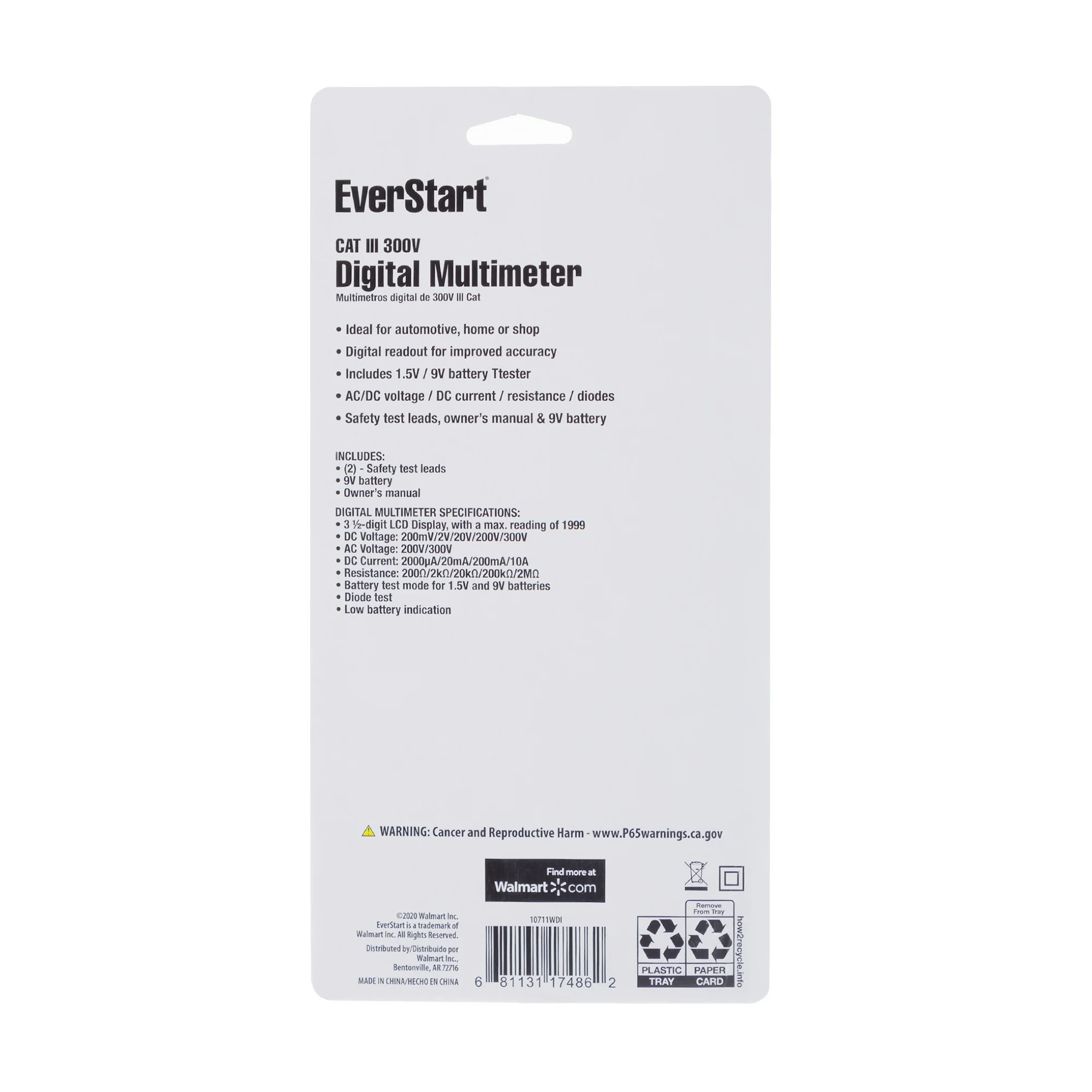 - Clear Display: Equipped with a large 3 1/2 digit LCD display with backlight for easy reading in dark environments.