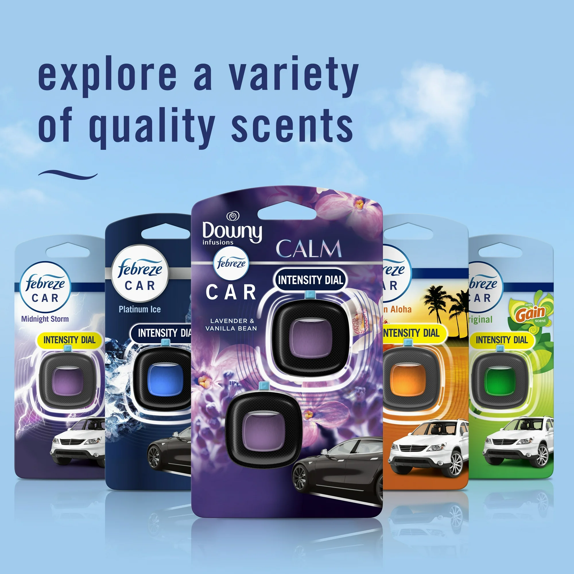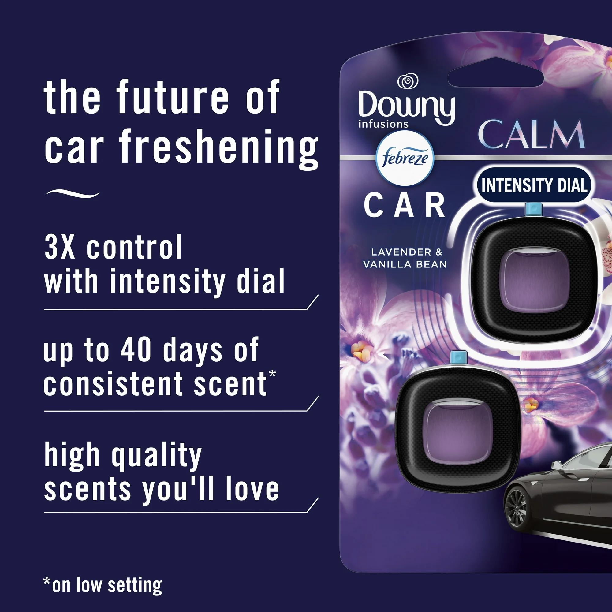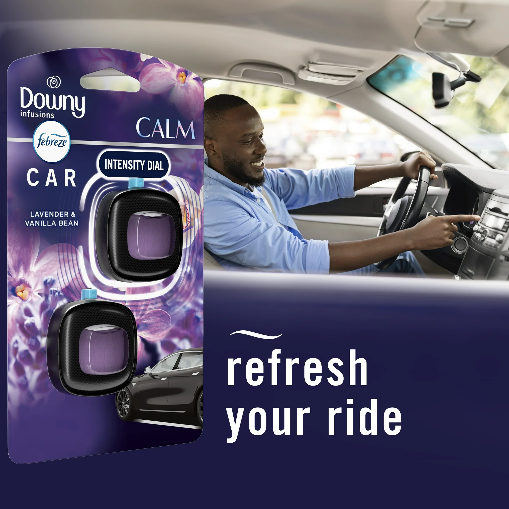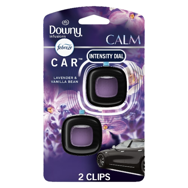 - Lavender & Vanilla Bean: Contains Downy Infusions in Lavender & Vanilla Bean, with 0.14 fl oz in 2 Car Vent Clips.